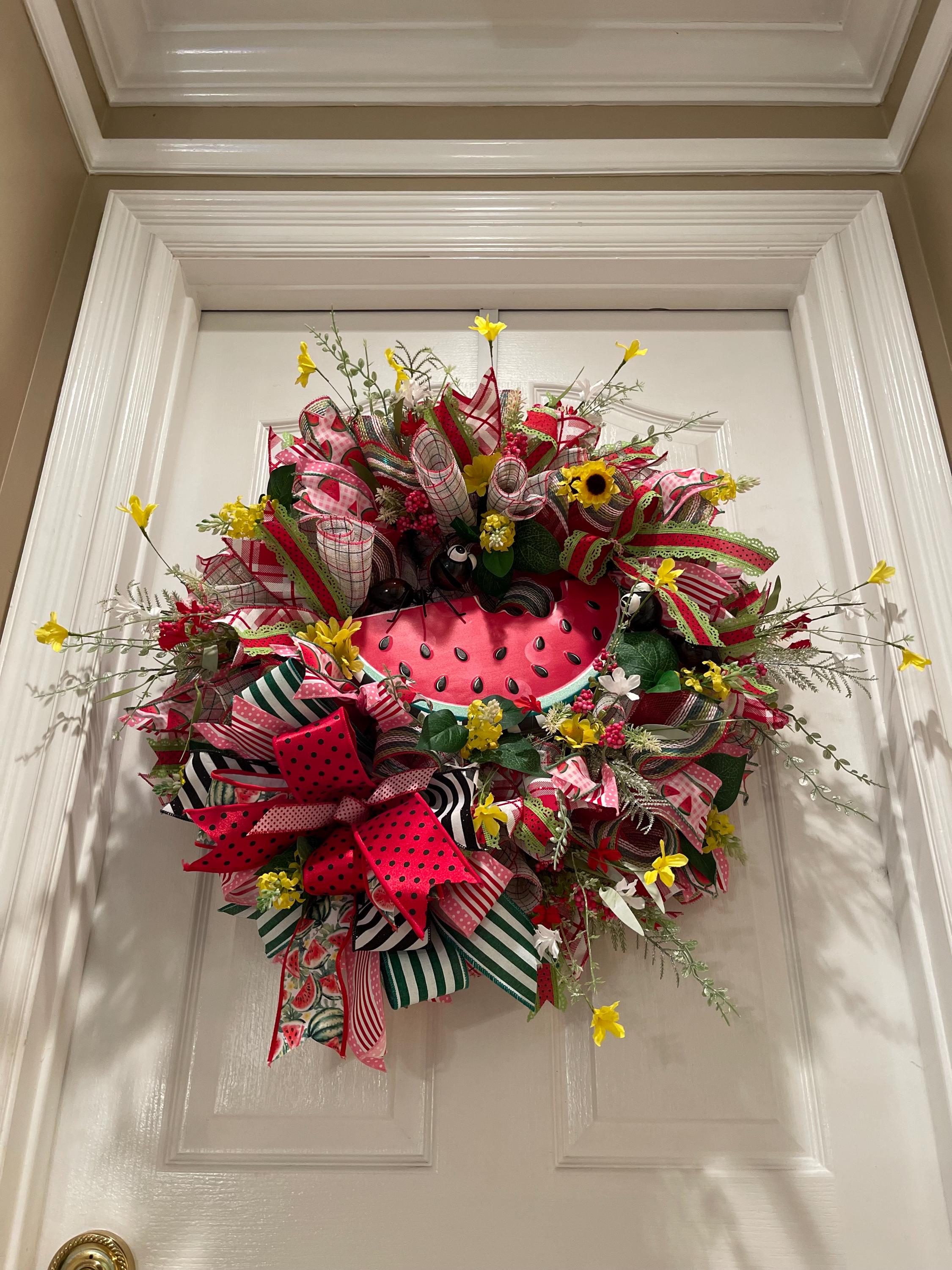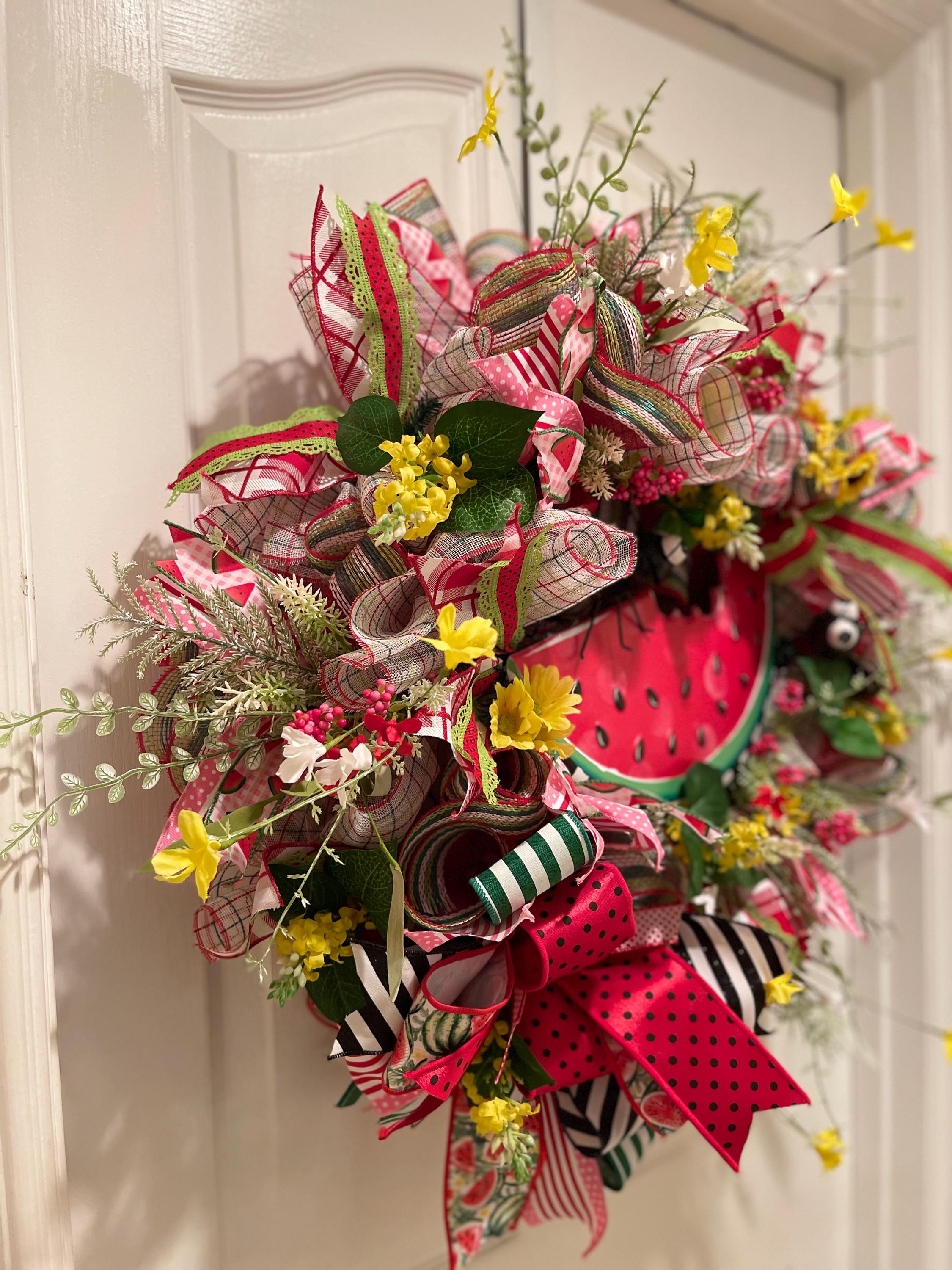 Celebrate the sunny season with this sweet and stylish watermelon wreath—order yours today to add a fresh pop of color to your summer home!