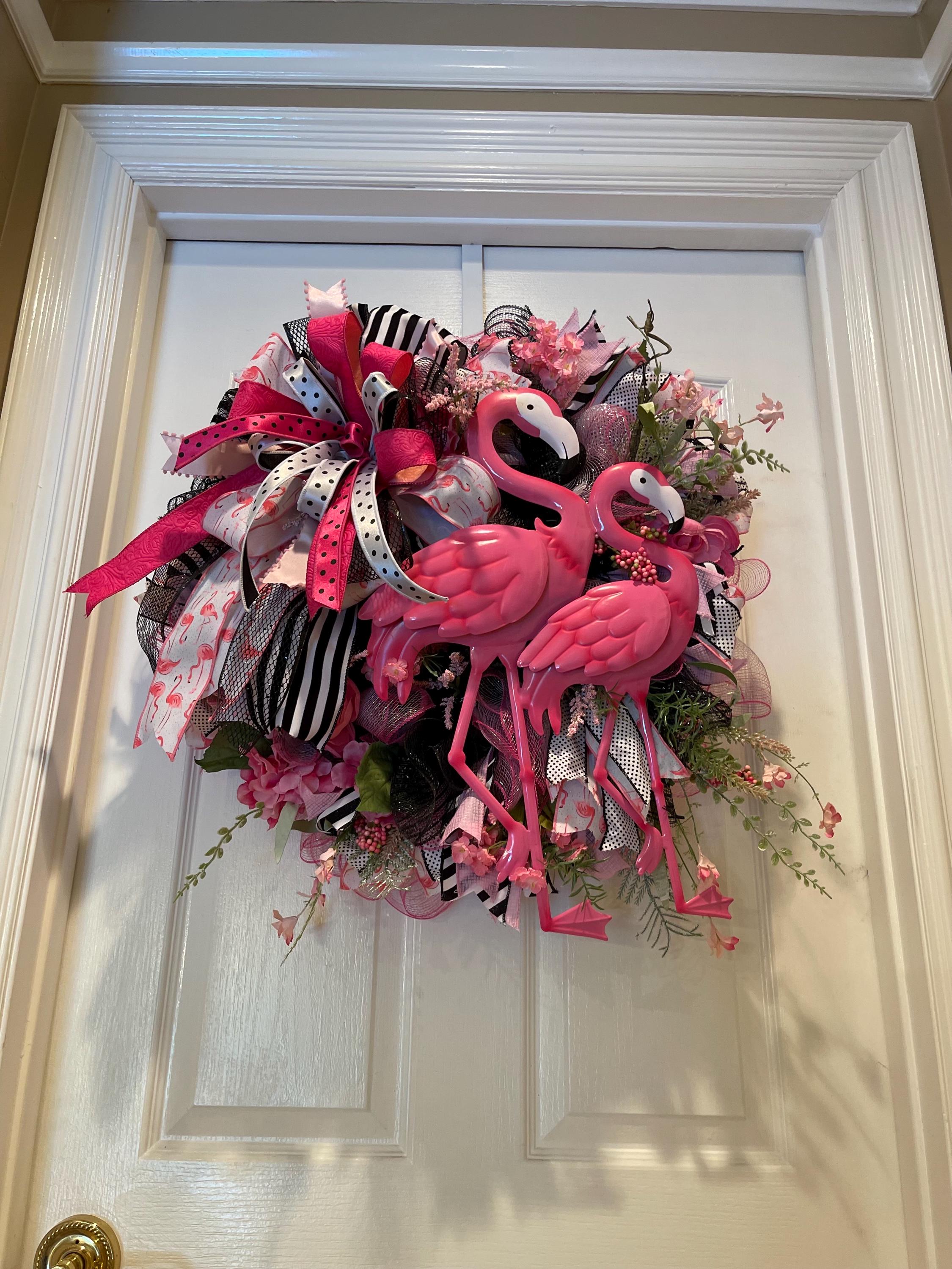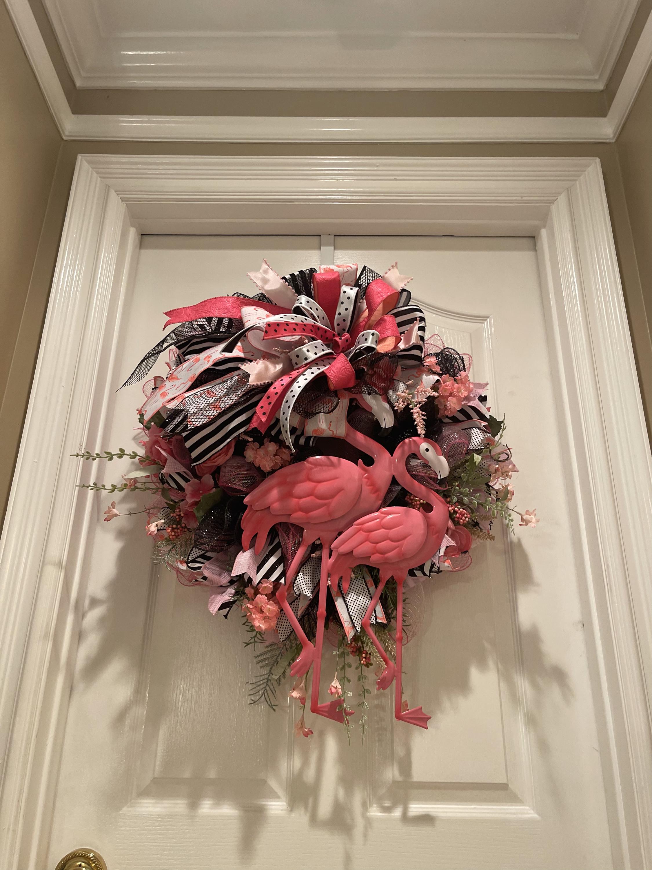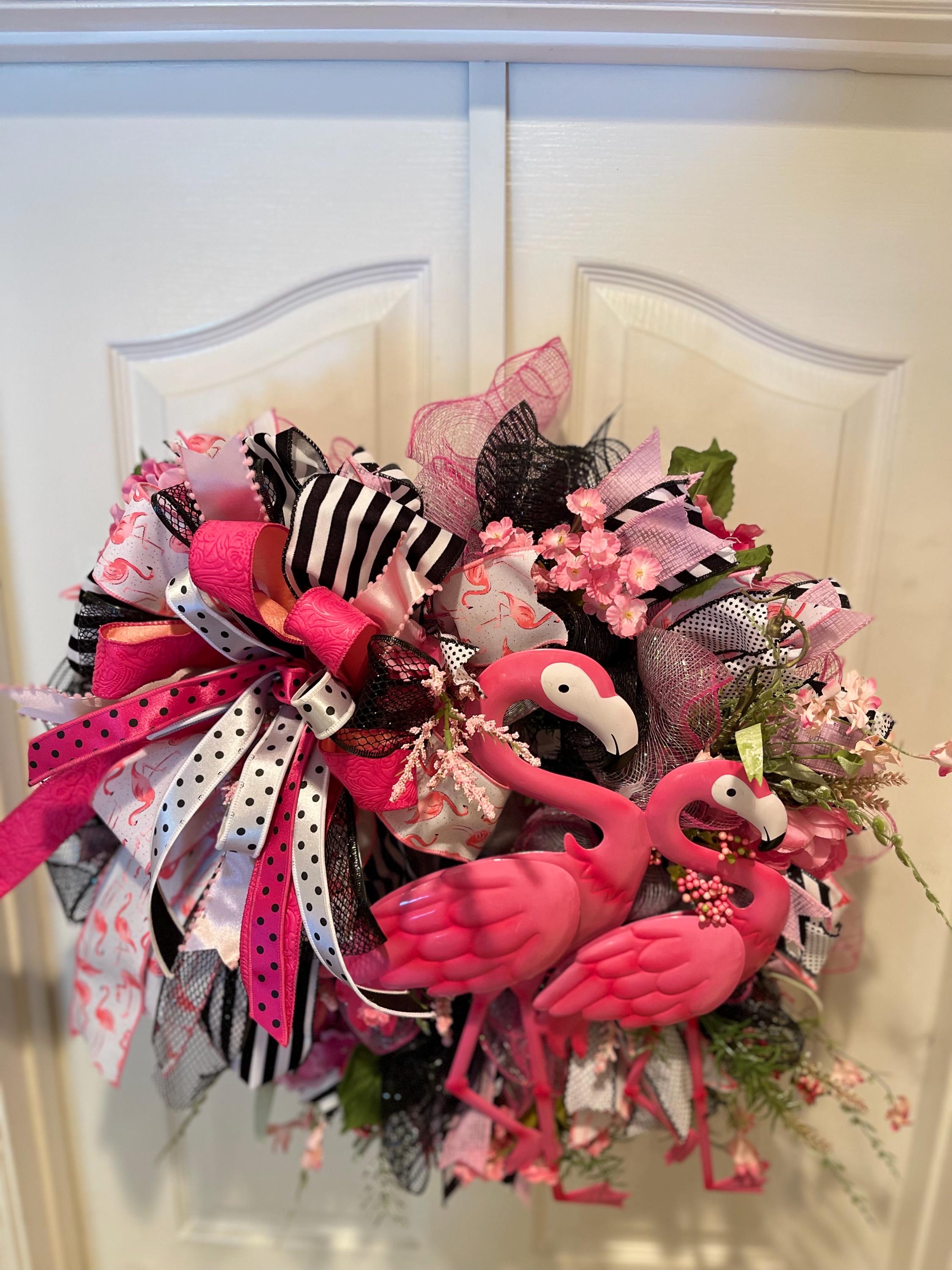 Perfect for summer decorating, pool parties, tropical-themed events, or gifting to your favorite flamingo lover. Each wreath is handcrafted with care and attention to detail, ensuring you receive a unique piece that’s made to last.