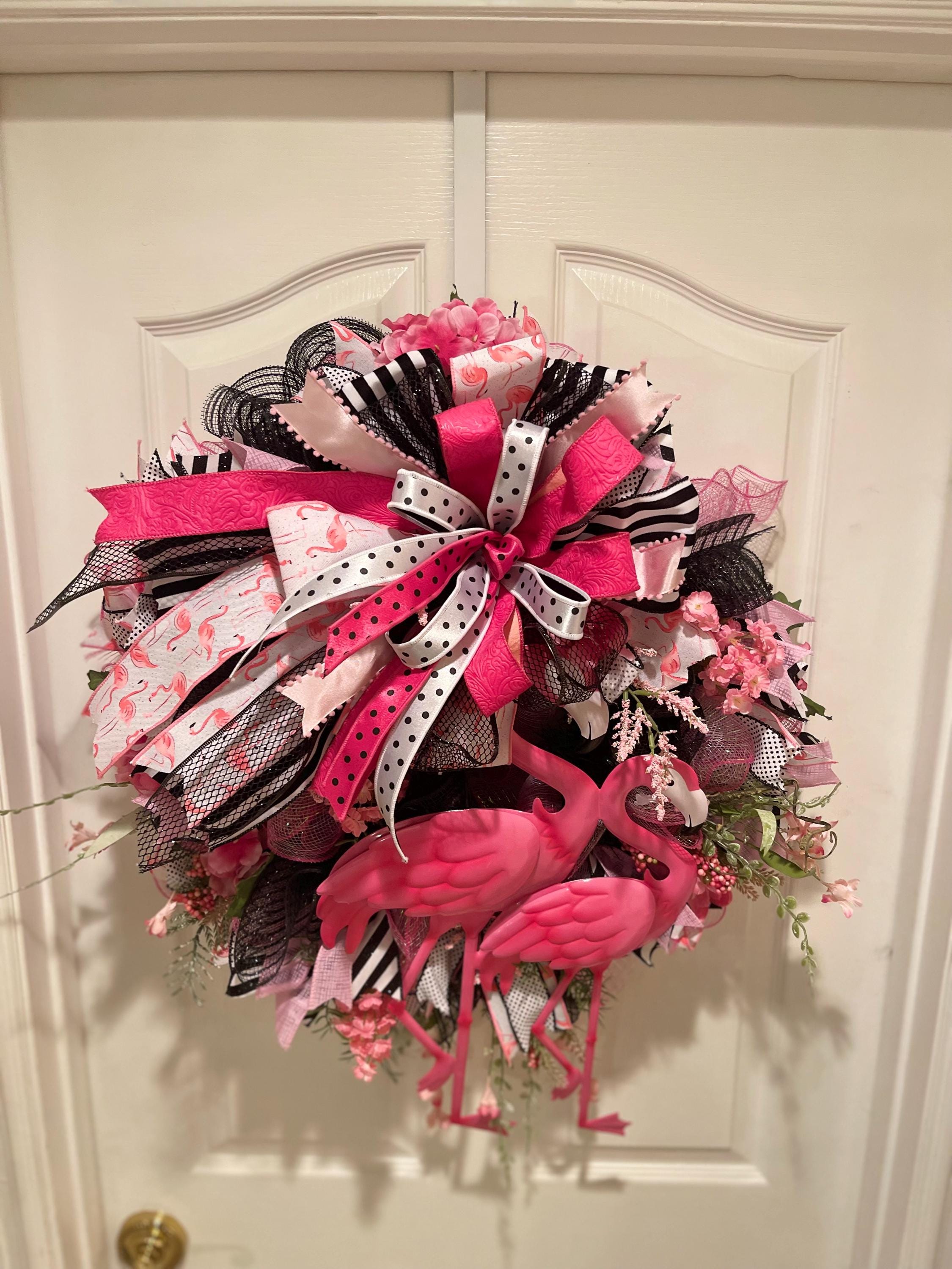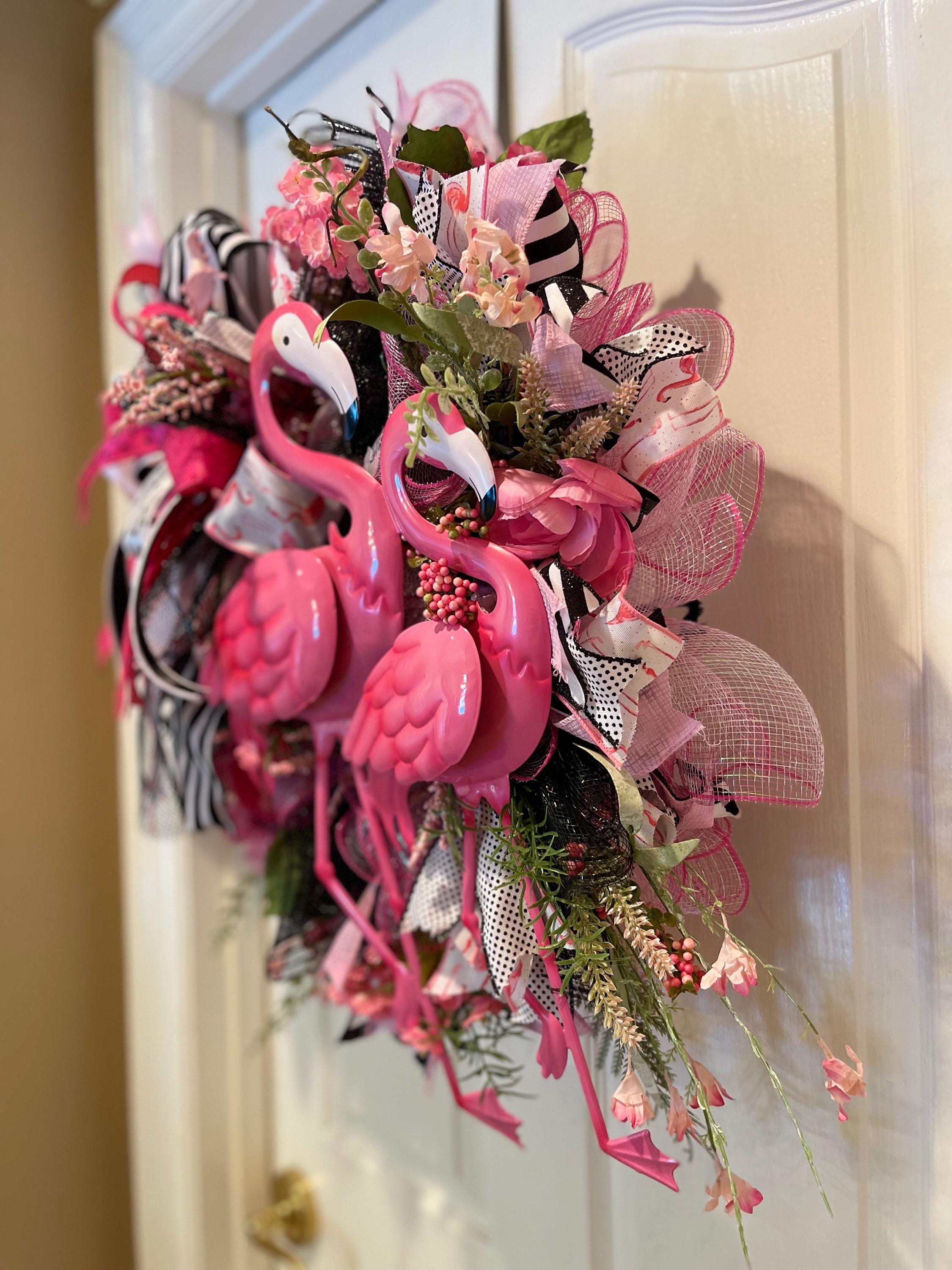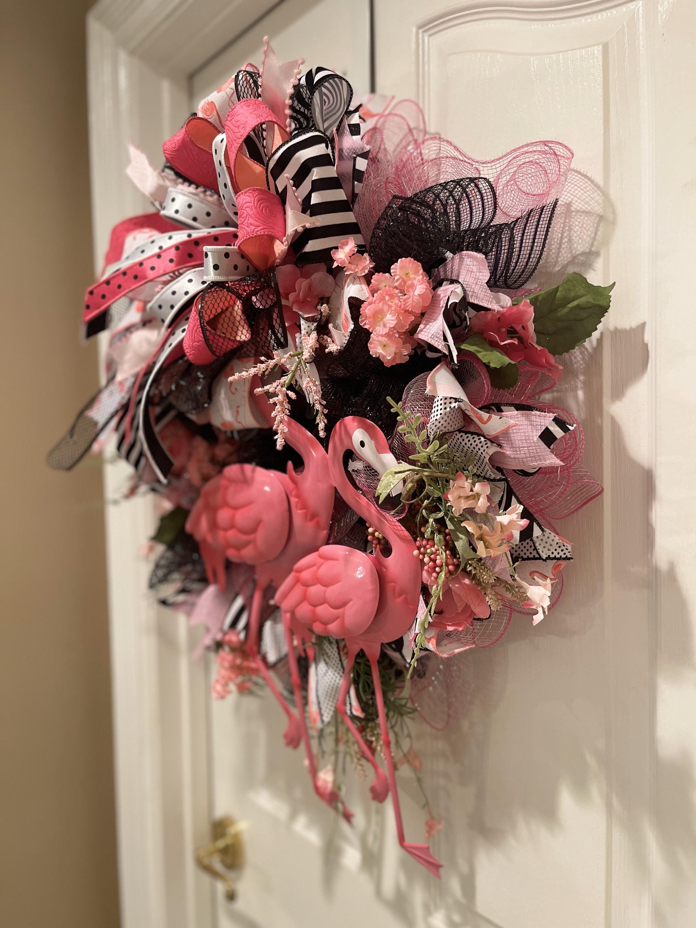Perfect for summer decorating, pool parties, tropical-themed events, or gifting to your favorite flamingo lover. Each wreath is handcrafted with care and attention to detail, ensuring you receive a unique piece that’s made to last.