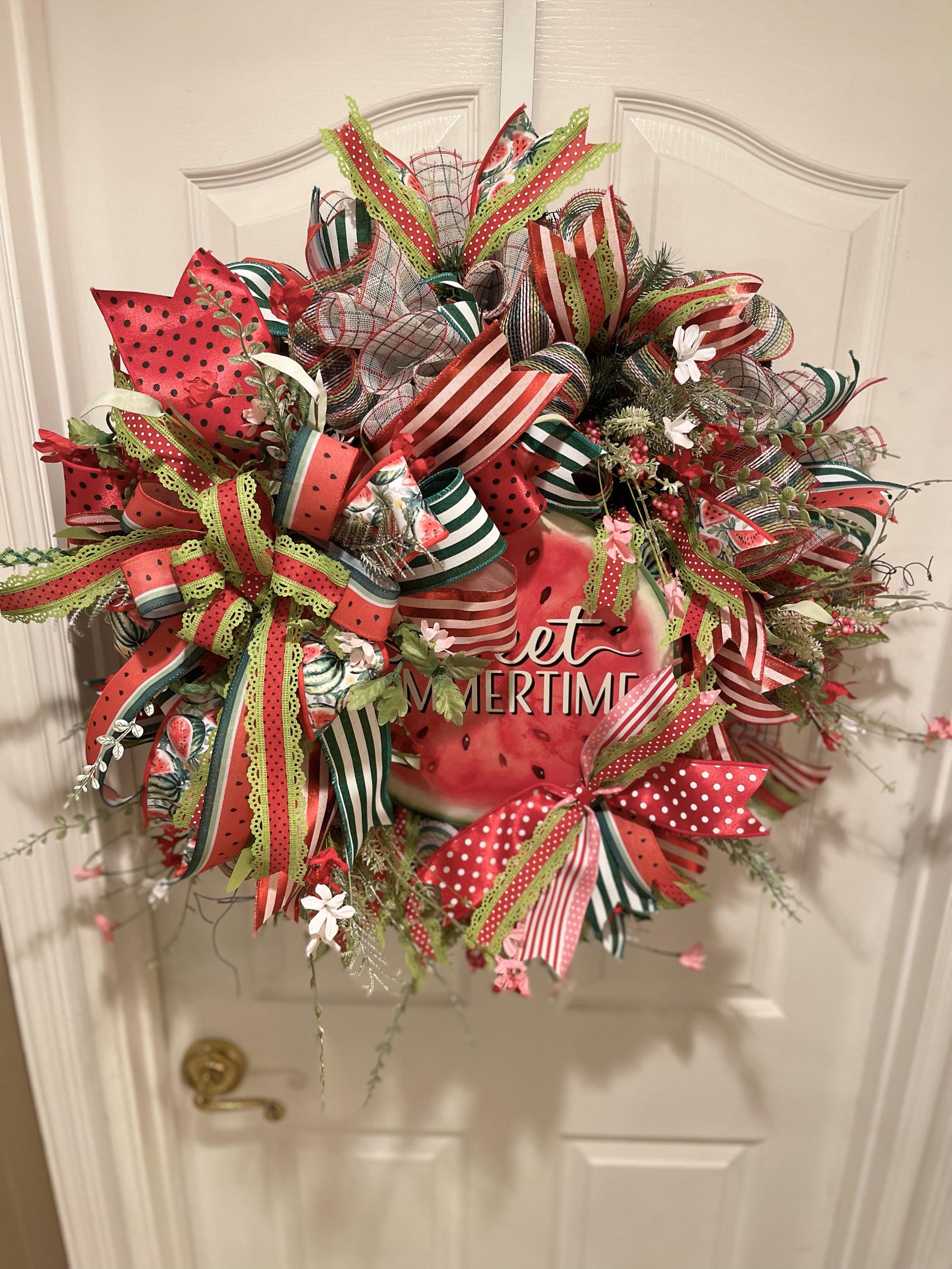 Bring the joy of summer straight to your front door with this vibrant “Sweet Summertime” wreath! Overflowing with colorful charm and handcrafted detail, this watermelon-inspired design is the perfect pop of cheer for your seasonal home décor.